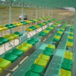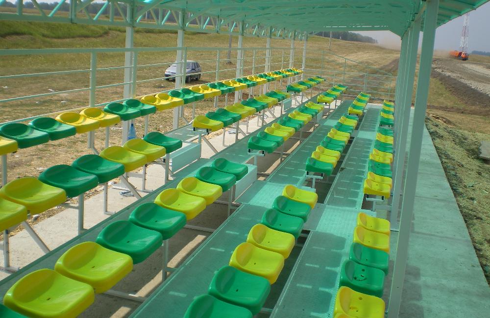 Ultra plastic seat with low backrest is designed for installation in outdoor and indoor sports facilities (stadiums, ice arenas, sports complexes).